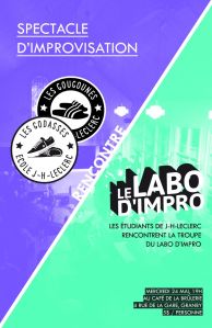 Le Labo d’impro revient pour une soirée d’improvisation supplémentaire en compagnie de la talentueuse relève de Granby. Les deux équipes d’improvisation de l’école J-H-Leclerc à Granby rencontreront donc les joueurs du Labo d’impro dans un match spécial.